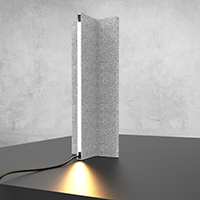 A minimalist lighting piece that explores material softness and structured form. Crafted from recycled PET felt, a tactile, acoustically absorbent presence. The folded