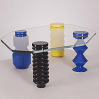 With a nod to Memphis, The Orders coffee table riffs on classical orders. Each leg is exaggerated, brightly painted, and designed to also stand alone as a collectable object. They’re interchangeable too—designed to be rearranged. The glass top floats above, keeping the focus on the shifting personalities below.